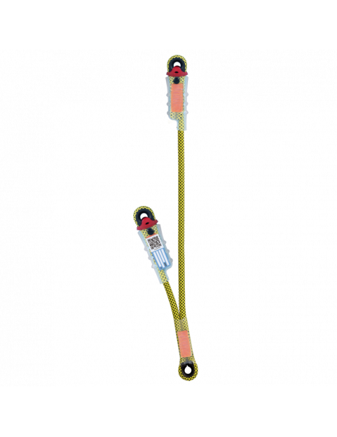 Lonża asymetryczna z liny dynamicznej z zakończeniami zszywanymi. Parametry dynamiczne tej lonży są znacznie lepsze niż tradycyjnej lonży statycznej.