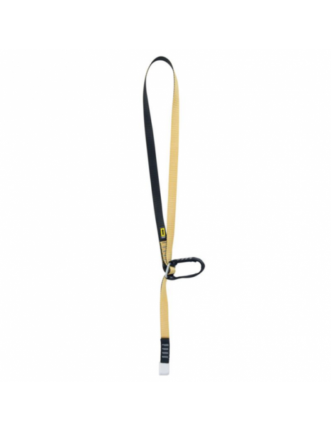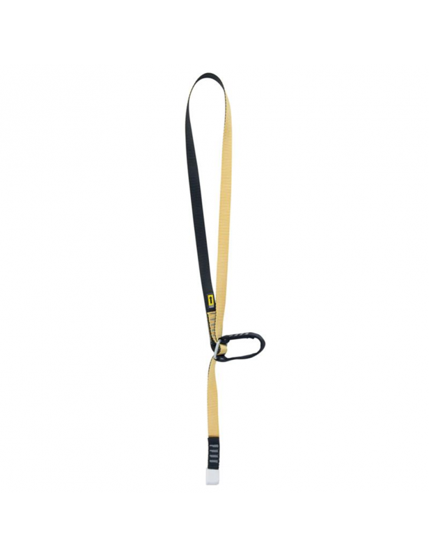 Regulowana lonża z taśmy ze stalową pojedynczą klamrą i uchwytem z taśmy, który pozwala regulować długość pod obciążeniem.
