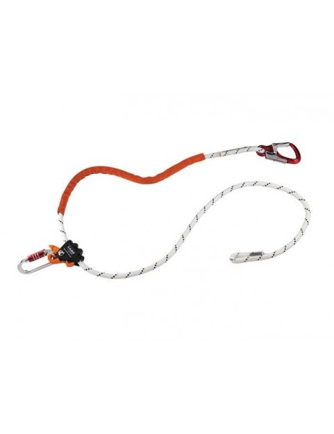 Rope adjuster wykonany jest z 12,5 mm liny statycznej, po której przesuwa się przyrząd zaciskowy pozwalający na regulację długości lonży do 2 metrów. Czerwona przesuwna taśma chroni linę przed przetarciem.