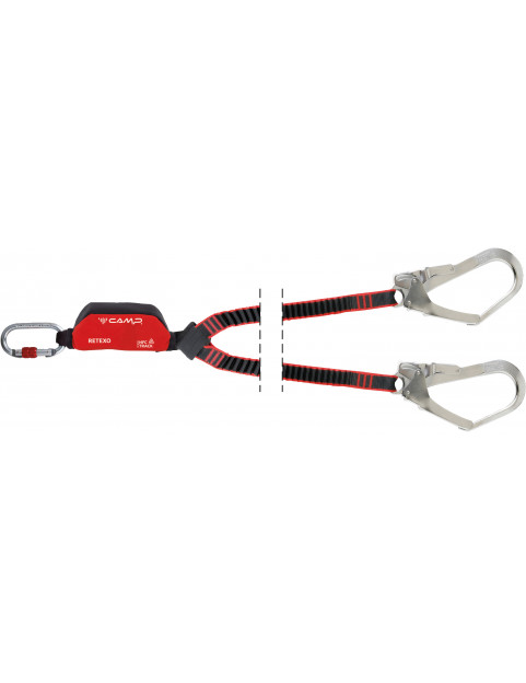 Lonża typu Y wyposażona w nowy absorber energii Retexo oraz dwa elastyczne ramiona zakończone karabinkami typu MGO o dużym prześwicie. W komplecie owalny karabinek stalowy do łączenia z szelkami bezpieczeństwa/uprzężą. Dzięki elastycznym ramionom lonża wraz z karabinkami ma długość od 115 do 175 cm.