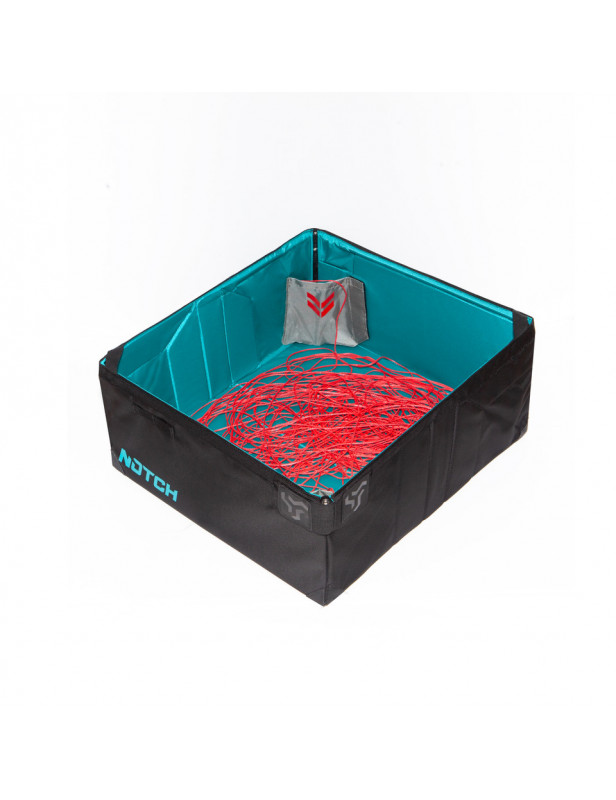 Wspomniana wcześniej autorska konstrukcja Notch Pop Box oznacza, że po złożeniu - bardzo prostym i szybkim - linka do rzutki jest transportowana na płasko, znacząco zmniejszając możliwość jej poplątania się. Zamknięty kosz przypomina wyglądem płachtę na linę, a o jego pewne zabezpieczenie dba solidna, metalowa klamra znana z kolekcji plecaków Notch. Pop Box posiada również rączkę do transportu lub przytroczenia kosza do plecaka. Produkt uszyto w grubego, mocnego poliestru dzięki czemu jest odporny na trudy pracy w terenie leśnym.