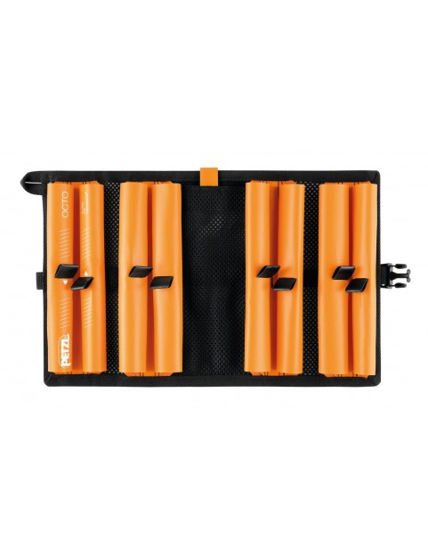 Pokrowiec OCTO został zaprojektowany to uporządkowanie, ochrony i transportu śrub lodowych. Posiada osiem przedziałów, w których można umieścić komplet dwunastu śrub lodowych oraz kieszonkę z siatki na akcesoria (ostrza, pilnik…).