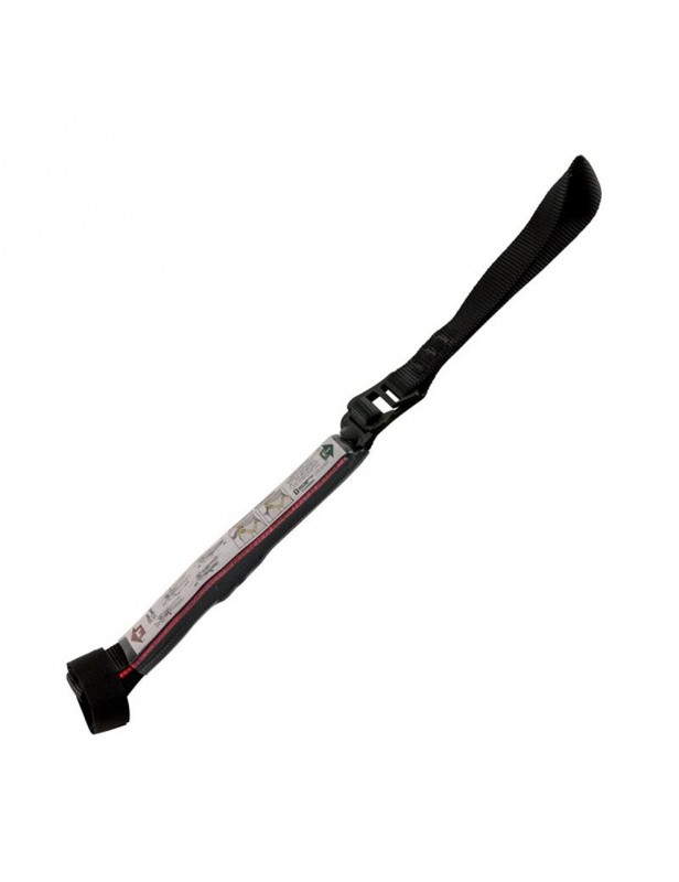 Dlatego, można ją traktować jako ratunkową lonżę podczas zwisu. Ponadto, zaleca się posiadanie przy uprzęży dwóch kompletów. Proste i łatwe mocowanie do uprzęży. Plastikowa osłona chroni ją przed uszkodzeniem gdy jest wpięta do uprzęży i nie używana. Pętla SUSPENSION TRAUMA SAFETY STRAP ma klamrę Rock & Lock która zapewnia łatwą regulację długości. Pętla na stopę w kontrastowym kolorze.