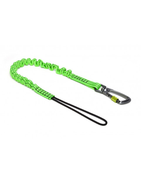 Rozciągliwe ramię lonży Bungee Tool Lanyard będzie nieocenioną pomocą podczas korzystania z narzędzi pracując na wysokości. Daleki, wynoszący maksymalnie 120 cm zasięg (w stanie spoczynku 80 cm) pozwala na komfortową pracę, podczas gdy elastyczne włókna ułatwiają utrzymanie porządku. Właściwie dobrane parametry oznaczają, że lonża bez problemu zniesie długotrwałe rozciąganie oraz pracę w najtrudniejszych warunkach. O łatwy montaż do punktu mocującego dba mocna pętelka, umożliwiająca dopięcie lub założenie lonży na krawat.