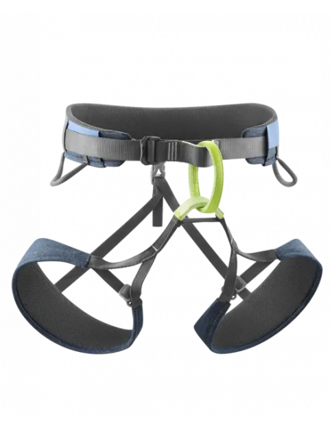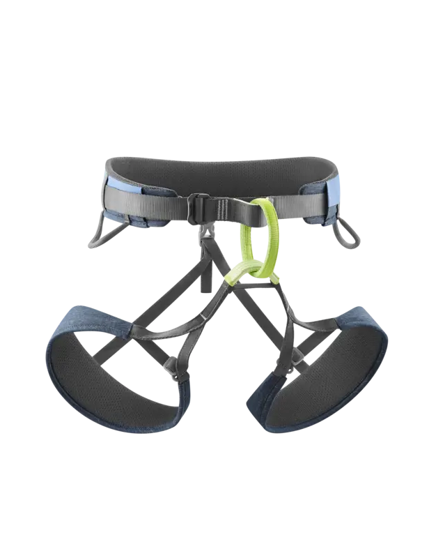 Nowoczesna i wygodna uprząż do wspinaczki sportowej z regulowanymi pętlami na nogi dla idealnego dopasowania.