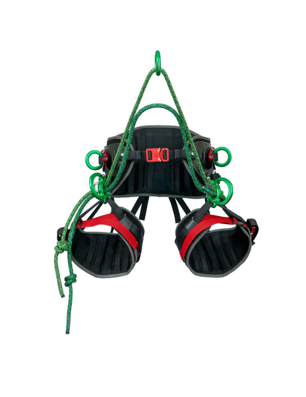 Uprząż została zaprojektowana do pracy z obciążeniem 150 kg, znacząco przekraczając założenia norm. Tego typu wartość umożliwia praktycznie każdemu technikowi bezpieczną pracę, niezależnie od ilości sprzętu, który do siebie przytroczy.