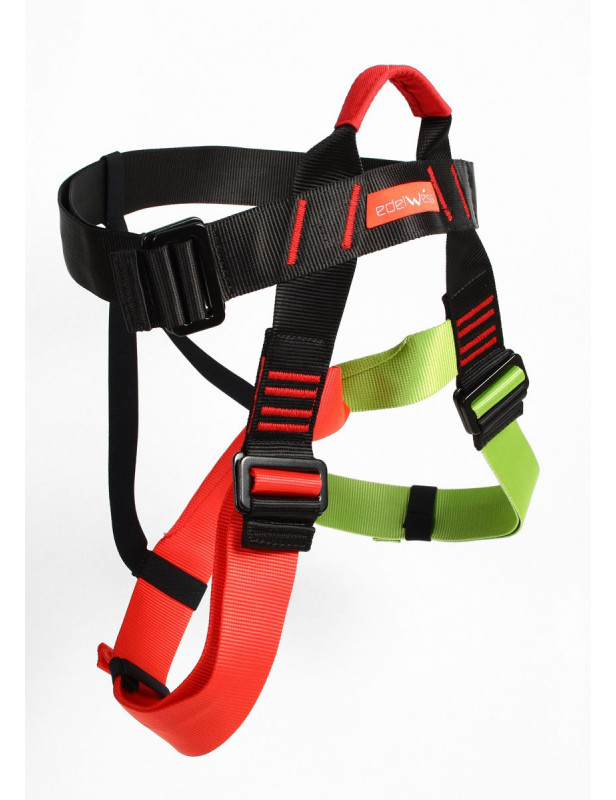Pętle udowe modelu zostały uszyte z materiałów barwionych odpowiednio na kolor czerwony (nogawka prawa) oraz zielony (nogawka lewa). Ułatwia to prawidłowe ubranie uprzęży, zwiększając tym samym komfort oraz bezpieczeństwo użytkownika.