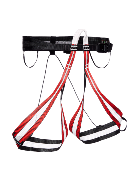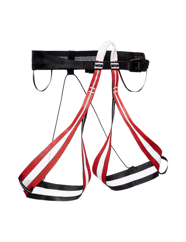 - Kolorowe szlufki w pasie i na nogach (wewnątrz/zewnątrz) ułatwiają zakładanie uprzęży