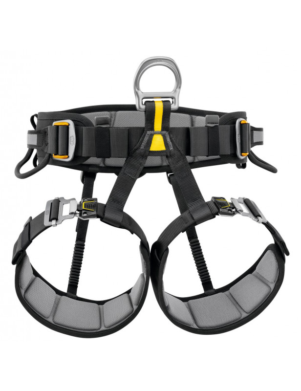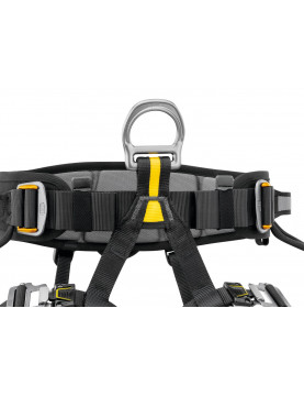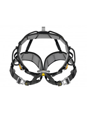 - przedni, metalowy punkt wpinania uprzęży rozkłada obciążenie pomiędzy pasem a taśmami udowymi podczas działań w zwisie.