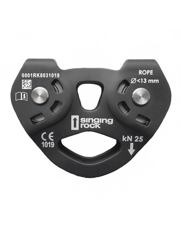 Bloczek TANDEM PULLEY podwójny, dla lin nylonowych i stalowych, przeznaczony do użytkowania na kolejkach tyrolskich w parkach rozrywki. Ponieważ ma uszczelnione każde łożysko osi roboczej i dużą średnicę rolek, dlatego zapewnia długą żywotność. Dlatego, że górny punkt zawieszenia bloczka jest wyprofilowany, umożliwia wpięcie karabinka. Dolny punkt mocowania pomieści do trzech karabinków. Z powodu zapewnienia ochrony liny przed kontaktem z niepożądanymi elementami, okładziny boczne odpowiednio wyprofilowano. Ponieważ rolka, oś i pokrywa przeciw kurzowa łożyska kulkowego są scalone szczelnie, dlatego zapewniają długą żywotność bloczka. Otwory w okładzinach umożliwiają czyszczenie otoczenia łożyska kulkowego.