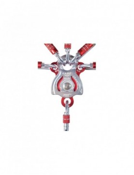 Wysokiej wytrzymałości, wielofunkcyjny bloczek do kompleksowych operacji. Charakteryzuje się dużą rolką, głównym otworem mocującym, który pomieści trzy karabinki oraz dwoma bocznymi otworami po bokach i jednym mocującym do liny. Dla lin o grubości max. 16mm. Prusik, węzeł samozaciskowy może być instalowany po obu stronach bloczka. Łożyska kulkowe idealnie znajdą zastosowanie szybkiego działania.