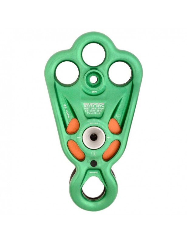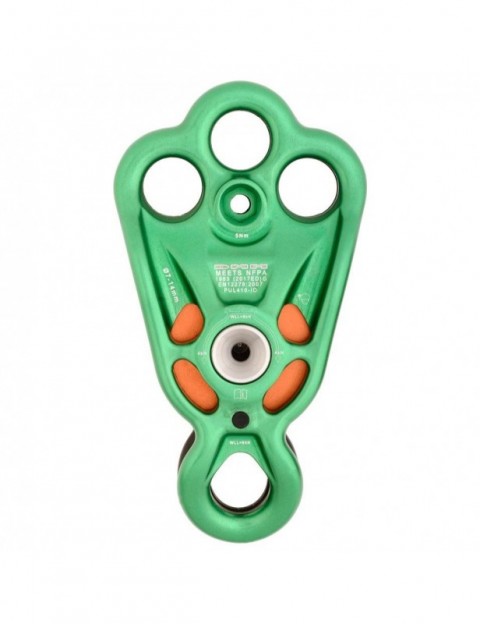 Dzięki połączeniu niezawodnego bloczka wraz z 3 punktami asekuracyjnymi, DMM stworzył wyjątkowo wszechstronne narzędzie do pracy. Otwory są duże, a dzięki kuciu okładek bloczka na gorąco udało się całkowicie wyeliminować ostre krawędzie. Dodatkowa możliwość wpinania taśm oraz przekładania lin na wszelkie możliwe sposoby otwiera całe mnóstwo nowych form i miejsc zastosowania bloczka. Oprócz tekstyliów, Rigger Pulley wybornie współpracuje również z karabinkami. Szerokie oczka praktycznie eliminują ryzyko zablokowania karabinka w trakcie pracy - i dotyczy to zarówno karabinków aluminiowych jak i stalówek.