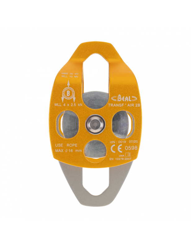 Duży bloczek podwójny z ruchomymi okładkami i łożyskami kulkowymi. Idealny do lin o dużych średnicach