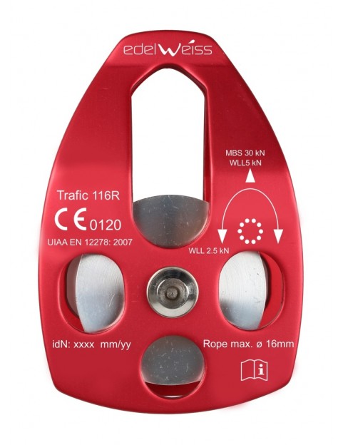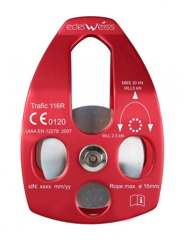 Większy z przedstawicieli rodziny Trafic, model 116 to duży i praktyczny bloczek o bardzo uniwersalnym charakterze. Znacząco redukuje tarcie, a dzięki wykonaniu w 100% z aluminium może również pochwalić się dużą trwałością. Oczko w górnej części jest na tyle szerokie, że bez problemu zainstalujemy w nim większość karabinków owalnych (zarówno aluminiowych, jak i stalowych) dostępnych na rynku.