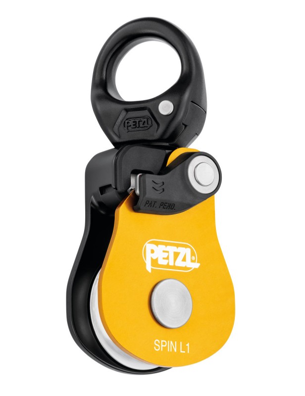 Możliwość otwarcia bloczka, nawet gdy jest wpięty do stanowiska. Bloczek SPIN L1 został zaprojektowany w taki sposób, by maksymalnie uprościć zakładanie układów do wyciągania, tyrolek lub odciągów. Rolka o dużej średnicy, zamontowana na szczelnym łożysku kulkowym, zapewnia bardzo dużą wydajność. Krętlik ułatwia operowanie bloczkiem pod obciążeniem: umożliwia jego orientację i bezpośrednie wpięcie karabinków, lin lub taśm.