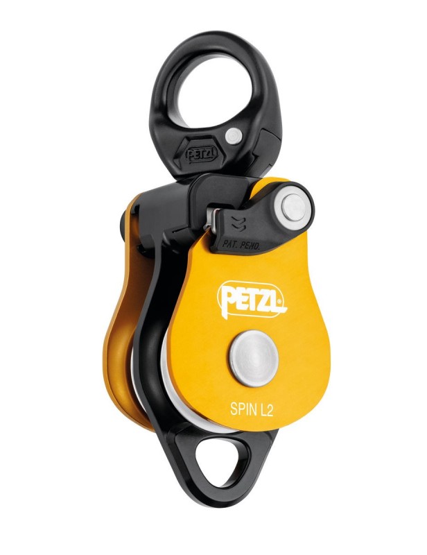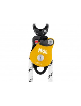 Możliwość otwarcia bloczka, nawet gdy jest wpięty do stanowiska. Bloczek SPIN L2 został zaprojektowany w taki sposób, by maksymalnie uprościć zakładanie układów do wyciągania, tyrolek lub odciągów. Dwie rolki umieszczone równolegle oraz dodatkowy otwór do wpinania umożliwiają konstrukcję złożonych układów do wyciągania. Rolki o dużej średnicy, zamontowane na szczelnym łożysku kulkowym zapewniają bardzo dużą wydajność, Krętlik ułatwia operowanie bloczkiem pod obciążeniem: umożliwia jego orientację i bezpośrednie wpięcie karabinków, lin lub taśm.