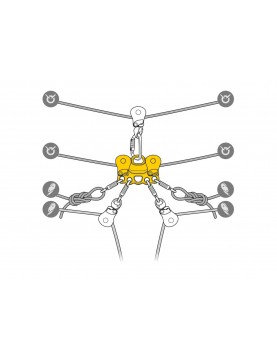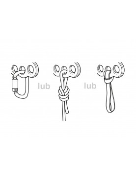 - możliwość zdublowania systemu używając dwóch bloczków REEVE, jeżeli liny znajdują się wystarczająco blisko lub wpięcie bloczka do otworu górnego, jeśli liny są oddalone,