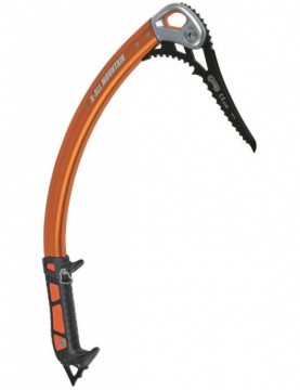 - Ostrze wykonane z chromowanej stali (kat. T) oraz aluminiowy (7075-T6) trzon (CE-UIAA type 2)