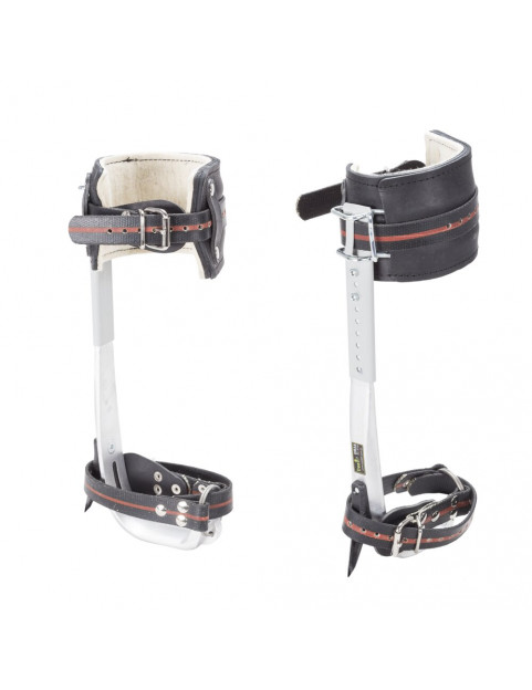 Drzewołazy aluminiowe z regulowaną wysokością poduchy łydkowej, dodatkowo poducha wyposażona w blachę usztywniającą nogę, przegubowo połączoną z pałąkiem.