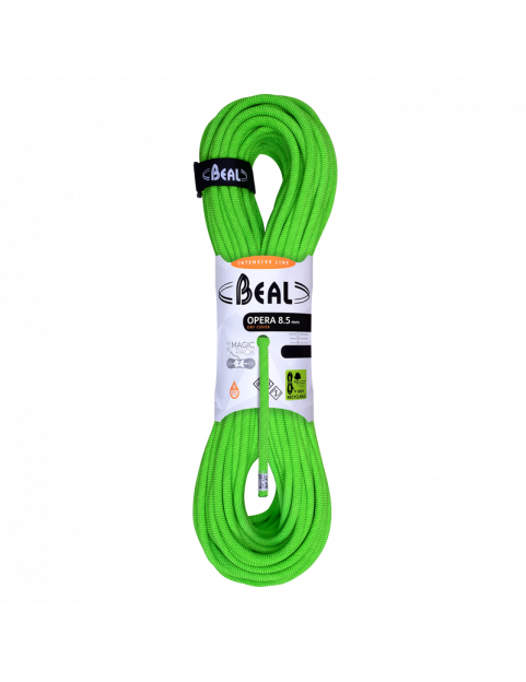 Ważąca zaledwie 48 g / metr, lina pojedyncza OPERA 8,5 mm, jest najcieńszą i najlżejszą na rynku. Posiada również certyfikację jako lina podwójna i bliźniacza. W tej linie użyte są najlepsze technologie stosowane przez Beala: niska siła uderzenia, technologia UNICORE, ochrona Dry Cover i certyfikacja UIAA Water Repellent (w wersji Golden Dry). OPERA 8,5 mm jest przeznaczona dla najbardziej wymagających wspinaczy.