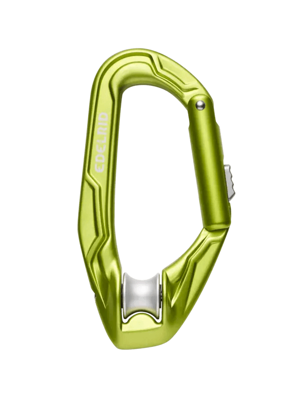 Karabinek ze zintegrowanym bloczkiem w grzbiecie. Krążek zmniejsza tarcie liny do minimum i zachowuje swoją funkcję nawet pod obciążeniem. Zoptymalizowana konstrukcja AXIOM zapewnia, że lina jest zawsze idealnie prowadzona, dzięki czemu lina zawsze może pracować na krążku. Dostępny z klasyczną bramką lub automatyczną i bardzo kompaktową bramką blokującą SLIDER. Bramka otwiera się od strony koła pasowego, co ułatwia instalację liny.