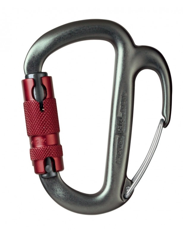 Karabinek z możliwością dodatkowego hamowania. Dodatkowy hamulec ułatwia kontrolę zjazdu, zwłaszcza na linie cienkiej, zabłoconej lub zalodzonej).