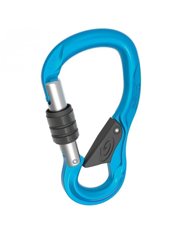 Zakręcany karabinek z dodatkową blokadą. Przemyślana konstrukcja automatycznie blokuje karabinek na łączniku zapobiegając niebezpiecznemu przekręcaniu się w czasie asekuracji. Aby zwolnić blokadę wystarczy przesunąć ją tak samo, jak zamek karabinka.