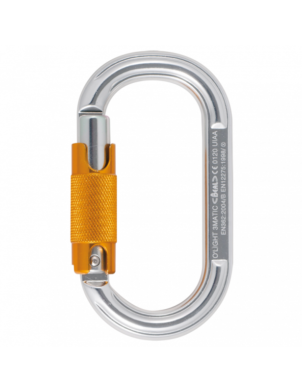 Symetryczny karabinek aluminiowy o owalnym kształcie, do łączenia przyrządów z dwoma okładami jak bloczki, przyrządy zaciskowe, autoasekuracyjne itd.