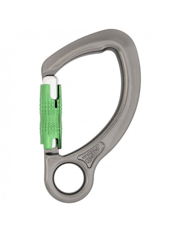 Automatyczna, trzystopniowa blokada zamka, która sprawdzi się w najbardziej złożonych systemach, także tych obejmujących przesuwające się liny. Wymaga trzech ruchów do odblokowania (podniesienie + przekręcenie + naciśnięcie), dzięki czemu spełnia wymagania przemysłowej normy EN 362. Dodatkowe wypustki na zakrętce usprawniają obsługę karabinka mokrymi dłońmi lub w rękawiczkach.