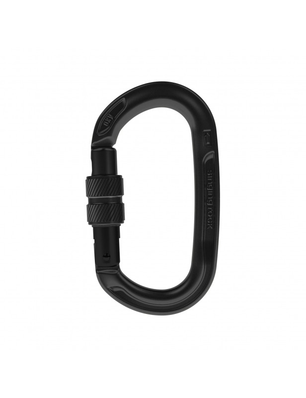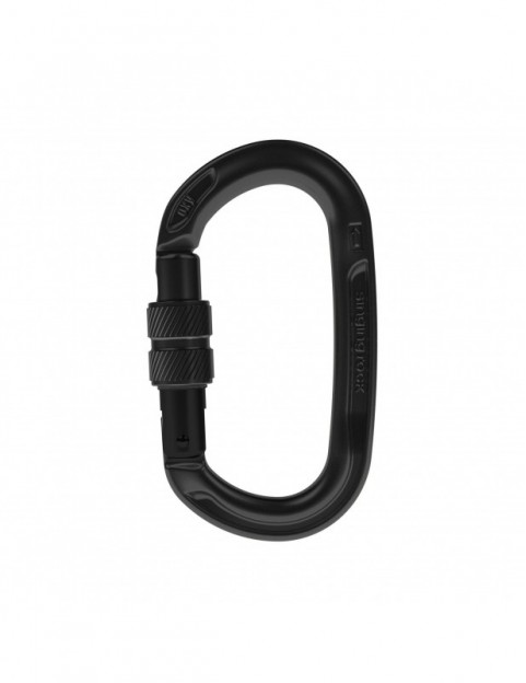 Karabinek OXY zakręcany czarny o owalnym kształcie z zamkiem typu Keylock. Idealny jako łącznik szelek uprzęży z uprzężą dolną