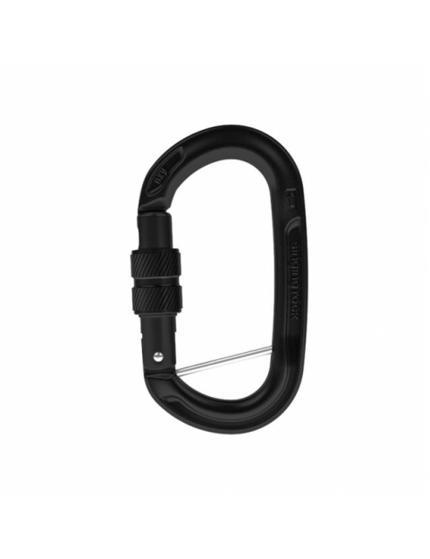 OXY zakręcany BC czarny owalny karabinek z zabezpieczeniem z zamkiem typu Keylock. Idealny jako łącznik szelek uprzęży z uprzężą dolną