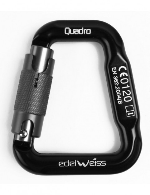Quadro to mały, ale niesłychanie przydatny karabinek. Swój charakterystyczny kształt zawdzięcza dostosowaniu do łączenia uprzęży biodrowej z częścią piersiową, ale świetnie sprawdzi się przy połączeniu wszelkiego rodzaju taśm czy pętli. Okrągły profil pozostaje łagodny dla miękkich włókien tekstyliów nawet po wielu godzinach pracy.Intuicyjny i prosty w obsłudze zamek automatyczny. Wymaga on dwóch ruchów do odblokowania (przekręcenie + naciśnięcie), dzięki czemu spełnia wymagania przemysłowej normy EN 362.Quadro produkowany jest w dwóch kolorach - czarnym z czerwonym zamkiem oraz czarnym z szarym zamkiem.Karabinek wyposażono w niehaczący zamek typu Keylock. Brak noska znanego z klasycznych modeli oznacza płynniejszą pracę i wyeliminowanie denerwującego zaczepiania się karabinka o szpejarkę, cięgło kości lub ścianki przyrządów.