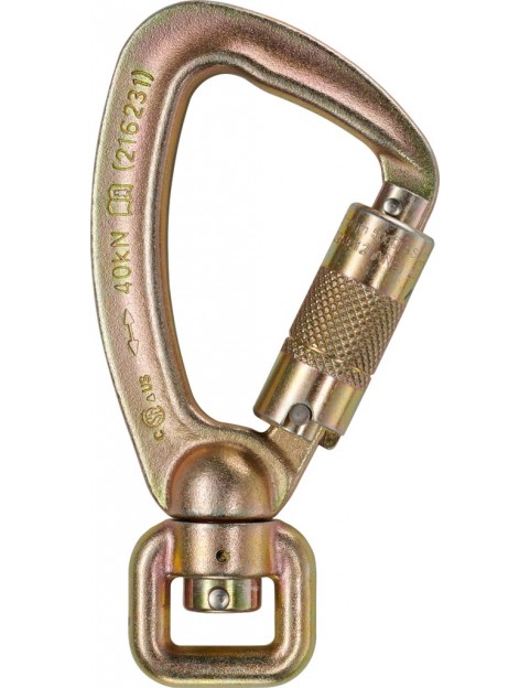 Wykonany ze stali konektr, który sprawdzi się w czasie dowolnej pracy na wysokości. Chcąc uczynić pracę jak najłatwiejszą, SKYLOTEC uzupełnił hak o płynnie działający krętlik z szerokim punktem wpięcia. Obsługa karabinka jest wyjątkowo prosta i ergonomiczna, także w rękawiczkach. Co ważne, hak ma certyfikację europejską (EN 362), amerykańską (ANSI Z359) oraz kanadyjską (CSA Z259).