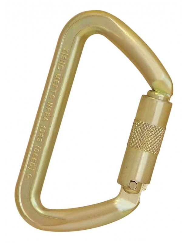 D-kształtny, stalowy karabinek o ogromnej wytrzymałości, wynoszącej aż 70 kN i bardzo pomysłowym otwieraniu na bok.