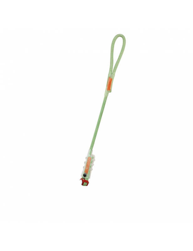 Lonża z liny dynamicznej, z zakończeniami zszywanymi, przeznaczona do bezpiecznego wpięcia się w stanowisko.