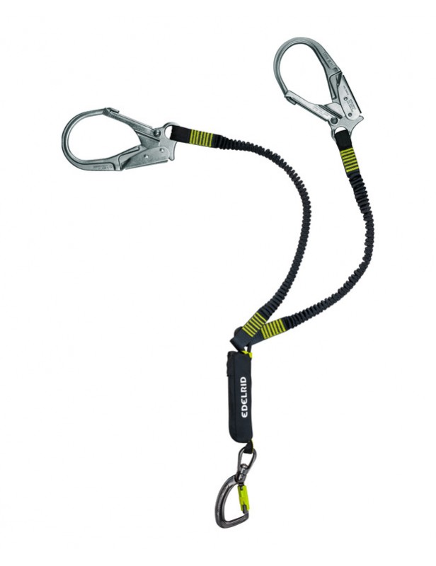 Lonża ze zintegrowanym absorberem energii. Karabinki stalowe posiadają wysoką wytrzymałość na blokowanie 16 kN, zgodnie z wymogami ANSI.