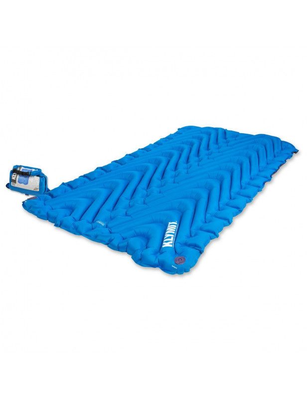 Mata 2 osobowa dmuchana KLYMIT Double V to podwójny materac z V-kształtnymi komorami. Jest to komfortowy materac o podwójnej szerokości idealny dla dwóch osób. Dwa rzędy podwyższonych komór w kształcie litery V tworzą ultra komfortowe komory powietrzne, które zapewniają podparcie kluczowych punktów ciała. Zaawansowana konstrukcja stabilizuje materac minimalizując uczucie pływania i podskakiwania, kiedy jedna z osób zmienia pozycję. Materac można wygodnie nadmuchać za pomocą worka kompresyjnego Stuff Sack.