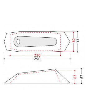 Wymiary namiotu: 100 x 300 x 70 cm (tropik) ; 80 x 220 x 65 cm (wnętrze)