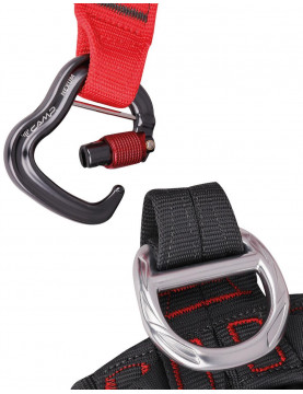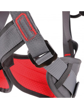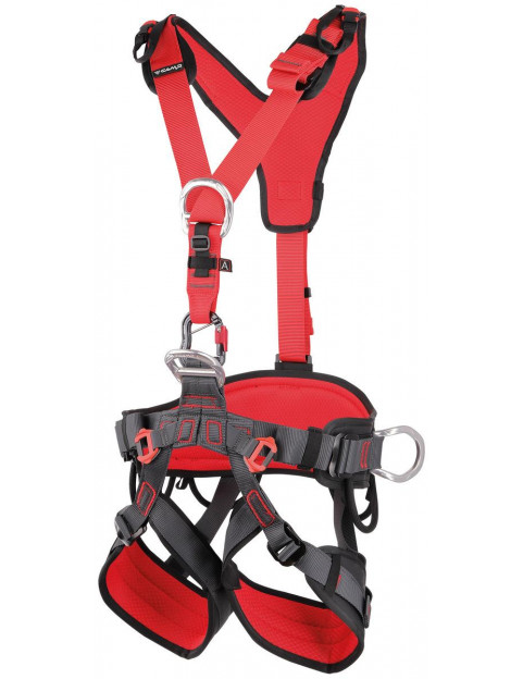 Wypełnienie różnej grubości i sztywności w zależności od miejsca, zapewnia odpowiednią ilość wsparcia i komfortu dla każdej części ciała. Opatentowana przednia podwójna pętla, pozwala przyłączyć jednocześnie uprząż piersiową i przyrząd oraz lonżę lub karabinek. Nowatorskie automatyczne klamry na paskach udowych przyspieszają zakładanie oraz zdejmowanie uprzęży.