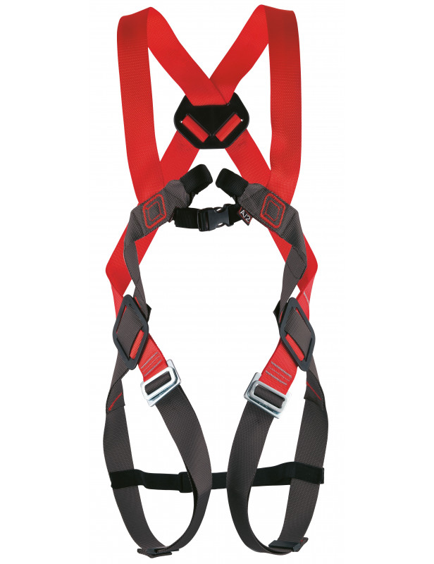 Szelki Basic Duo to podstawowe pełne pasy bezpieczeństwa do zabezpieczenia przed upadkiem z wysokości, np. z rusztowania. Uprząż Basic duo CAMP wyposażono w dwa punkty wpięcia: z przodu w postaci dwóch pętli tekstylnych, drugi z tyłu w postaci stalowego kolucha