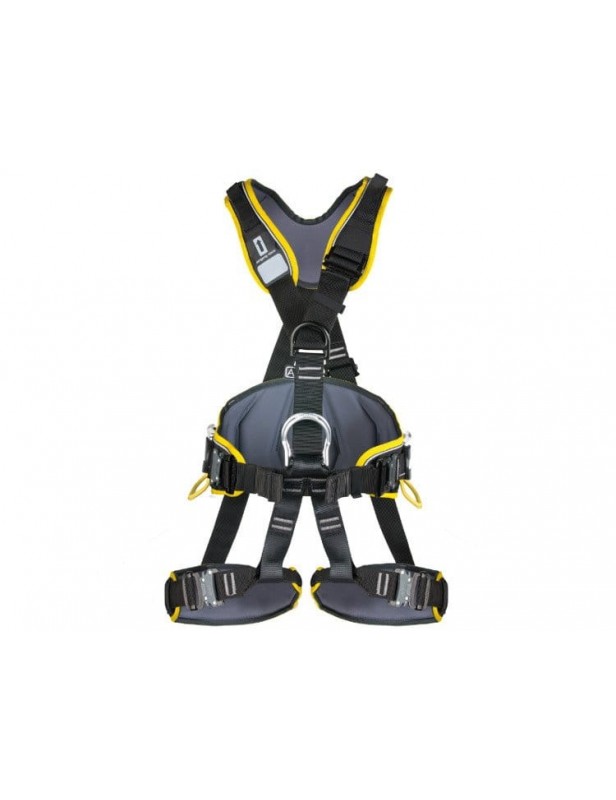 Standardowe klamry Speed umożliwiają płynną regulację i możliwość dopasowanie rozmiaru dla potrzeb użytkownika. Super wygodne, szerokie wyściełanie pasa biodrowego zapewnia użytkownikowi maksymalny komfort podczas pracy. Wyprofilowano szelki w okolicy szyi by zwiększyć komfort użytkowania. Przedni i tylny punkt wpięcia dla zabezpieczenia przed upadkiem z wysokości, ponieważ zgodnie z normą EN 361 posiada oznaczenie „A”. Punkt do zamocowania przyrządu do zjazdu lub do stabilizacji pozycji pracy, zgodny z normą EN 813.
