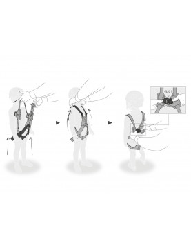 - ubieranie dziecka w uprząż jest ułatwione dzięki klamrze FAST LT PIN-LOCK, znajdującej się z tyłu uprzęży,