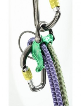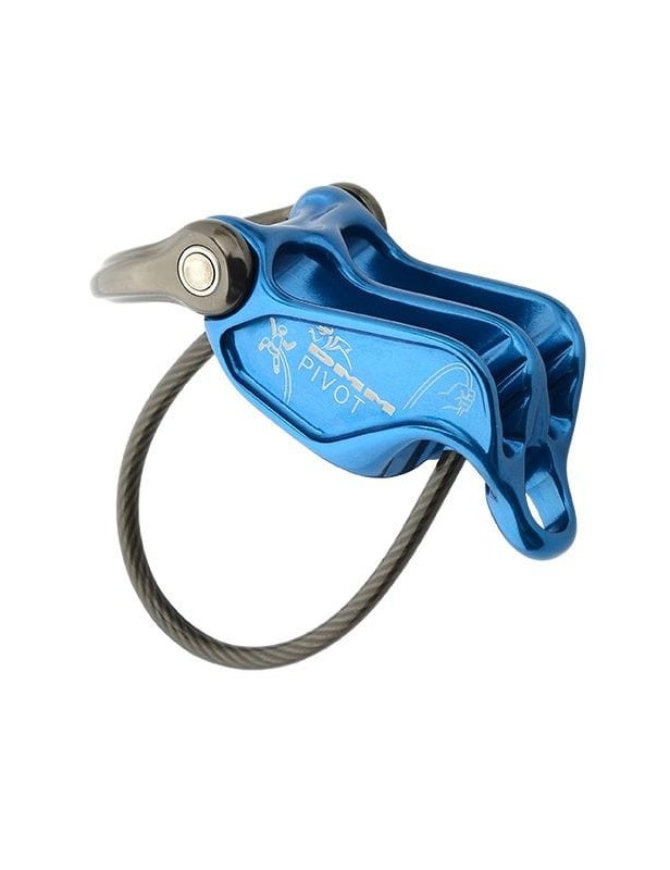 To, że robiony jest w Walii z najlepszego aluminium, ma ruchome oczko stanowiskowe i nazywa się DMM Pivot! Na rynku jest wiele przyrządów, które przeznaczone są do wspinaczki wielowyciągowej. Od tradycyjnych kubków, wyróżnia je przede wszystkim dodatkowy punkt wpięcia z tyłu przyrządu, dzięki któremu możemy zamontować je na górnym stanowisku i w ten sposób wygodniej wybierać linę. Największym problemem takiego układu jest jednak podawanie luzu oraz opuszczanie wspinacza. W większości przyrządów, po ich zablokowaniu, trzeba użyć naprawdę dużej siły, żeby odblokować linę pod obciążeniem. Pivot eliminuje tą niedogodność, wprowadzając jeden bardzo prosty, ale i sprytny, patent.
