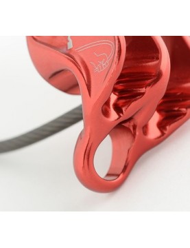 Skoro już jesteśmy przy temacie lin - Pivot posiada bardzo efektywne rowki hamujące. Są one na tyle duże, że nawet na bardzo cienkich linach nie ma problemu z blokiem, niezależnie od tego, czy są oblodzone, mokre czy brudne. Oznacza to, że nawet przy dużej różnicy mas w zespole, nie będzie problemu ze spokojnym utrzymaniem na bloku znacznie cięższej osoby. A jeśli ktoś woli pracować z grubszymi linami, wystarczy obrócić przyrząd o 180°.