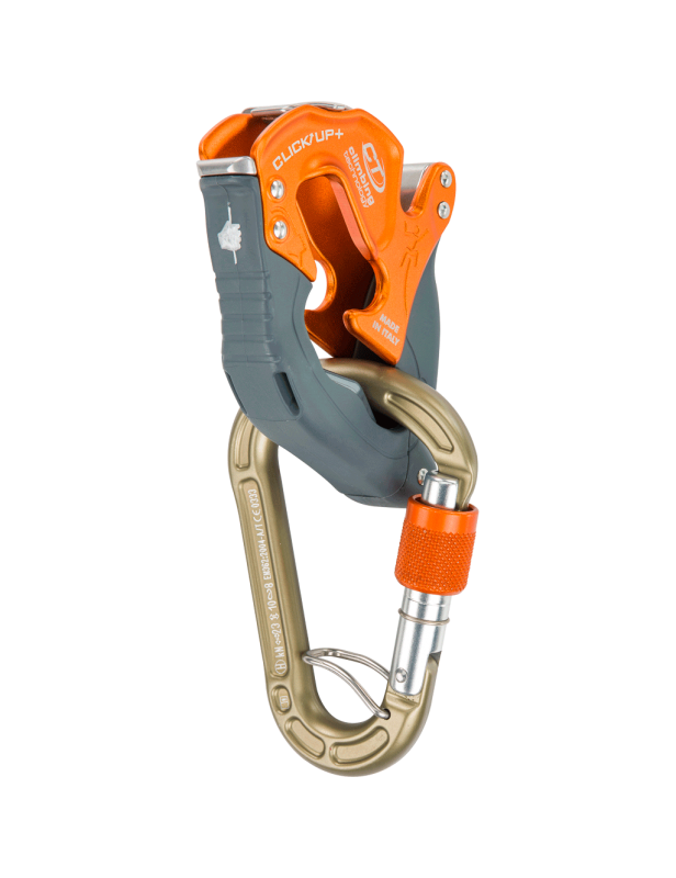 Przyrząd Climbing Technology Click Up Plus jest połączony w zestaw z karabinkiem Concept SGL HC. Jest on kuty na gorąco, wykonany z lekkich stopów i wyposażony w system ACL zapobiegający jego niepożądanej rotacji. Posiada także anodowaną powłokę, zwiększającą jego odporność.