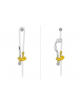 - dolny otwór do wpinania z krętlikiem stale ustawiającym prusik mechaniczny w dobrej pozycji, dla lepszego przesuwania się liny w przyrządzie.