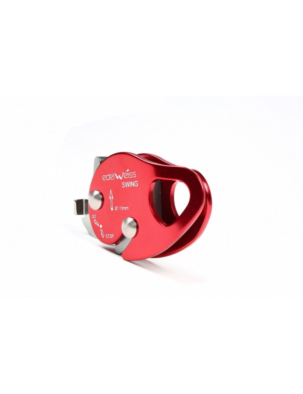 Swing to wykonany w 100% z metalu, kompaktowy i praktyczny przyrząd autoasekuracyjny, certyfikowany zgodnie z normami EN 353-2 oraz EN 12841-A. Dzięki ergonomicznie zaprojektowanej krzywce łagodnie obchodzi się z wpiętą w niego liną. Podczas podchodzenia przyrząd płynnie podąża za wspinaczem, blokując się natychmiast w momencie obciążenia. W ekstremalnych sytuacjach może być również używany jako urządzenie ratunkowe (do 200 kg).Na przedzie korpusu Swinga umieszczono ruchomą, metalową zapadkę o wyoblonych krawędziach. Jej przestawienie umożliwia „zaparkowanie” przyrządu na konkretnej wysokości, nie uszkadzając przy tym wrażliwych włókien liny. Użytkownik może dzięki temu zablokować Swinga, zyskując możliwość wygodnej (i bezpiecznej) pracy, redukując ryzyko obsunięcia. Płytka posiada ergonomiczny kształt, umożliwiający obsługę nawet w rękawiczkach.Swing pracuje z linami o średnicach od 11 mm do 13 mm. Tak szeroki zakres oznacza, że będzie on współpracował ze zdecydowaną większością lin dostępnych na rynku.Jednym z plusów tego modelu jest możliwość założenia go w dowolnym punkcie liny, także pod obciążeniem - wystarczy tylko odchylić zewnętrzną okładzinę. Dodatkowo, wyraźnie narysowana strzałka wskazująca kierunek pracy przyrządu stanowi dodatkowe zabezpieczenie prawidłowego wpięcia.Mierzący zaledwie 112 mm długości Swing jest bardzo poręczną propozycją, która nie zajmie wiele miejsca przy uprzęży. Również waga jest zaskakująco niska (165 g), szczególnie jak na przyrząd wykonany w całości z metalu.