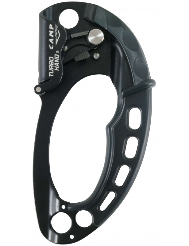 Turbohand wyposażono w 3 duże otwory do wpięcia karabinków, odpowiednio 2 na dole i 1 na górze. Wytrzymała obudowa wykonana jest z aluminium o grubości 3,5mm a jej geometria pozwala na swobodne używanie również na trawersach.