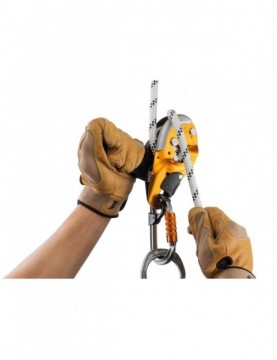 - system AUTO-LOCK umożliwia łatwe przyjęcie pozycji na stanowisku pracy, bez konieczności manipulacji rączką i robienia blokady z liny: gdy użytkownik puści rączkę lina jest automatycznie blokowana przez przyrząd. Automatyczny powrót rączki zmniejsza ryzyko przypadkowego zahaczenia,