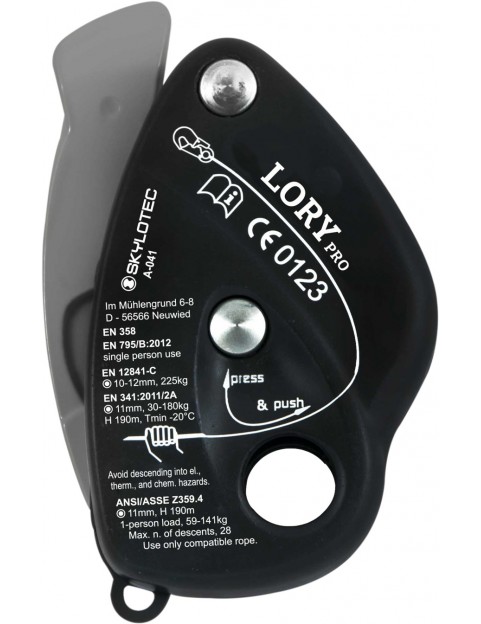 Lory Pro wyposażony został w intuicyjnie działającą funkcję antypaniczną. Uaktywnia się ona w sytuacji, gdy użytkownik zbyt mocno pociągnie dźwignię opuszczającą, zabezpieczając go tym samym przed ryzykiem niekontrolowanego zjazdu. W celu odblokowania przyrządu wystarczy zwolnić rączkę do pozycji wyjściowej i rozpocząć od nowa procedurę opuszczania.